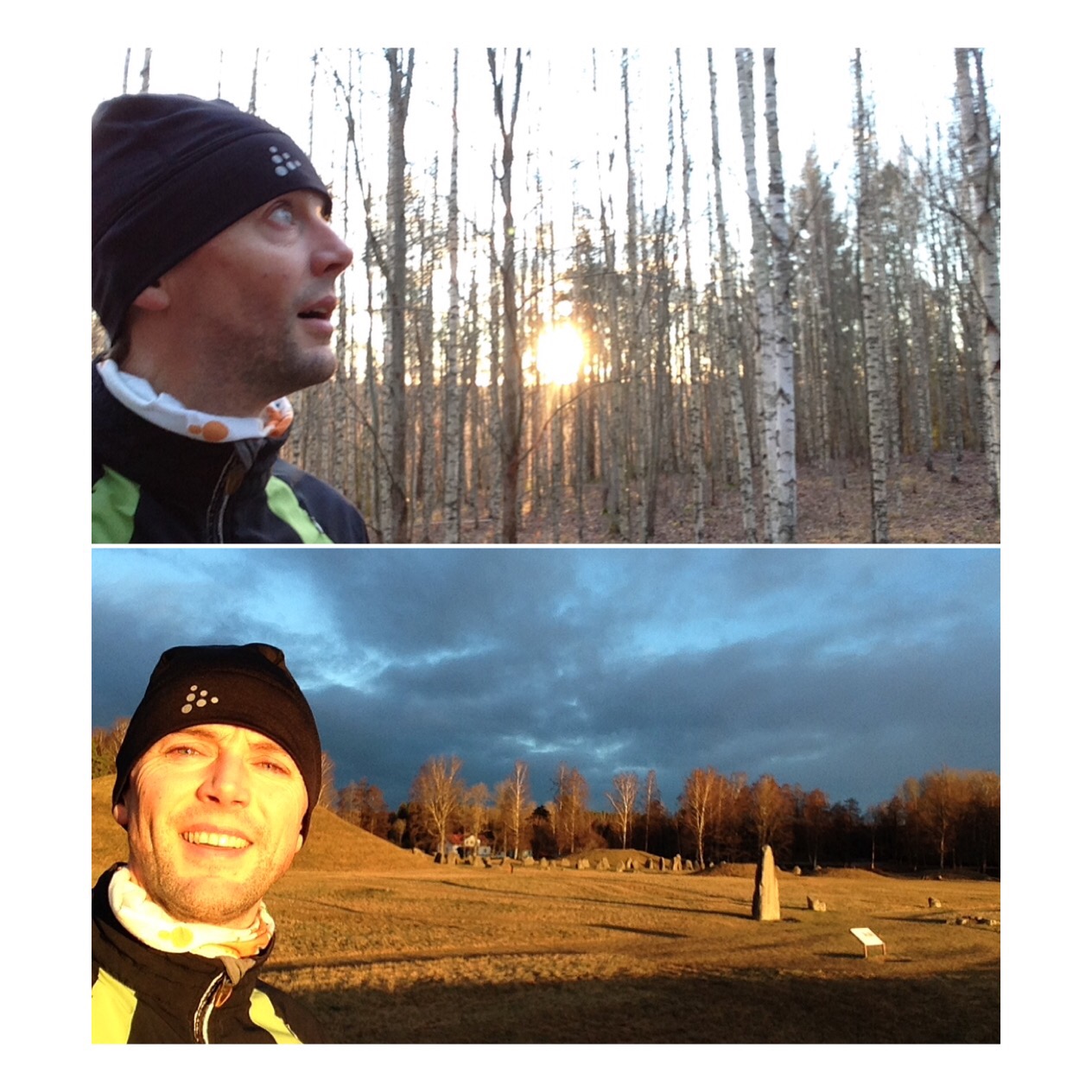 Trevlig morgonrunda med bästa löparen Mattias. Solsken, några minusgrader, nya runda,trevligt sällskap – kan inte bli bättre! Passade på att kolla in så stenarna vid Anundshög stod kvar (vilket de har gjort de senaste 1000 åren…)